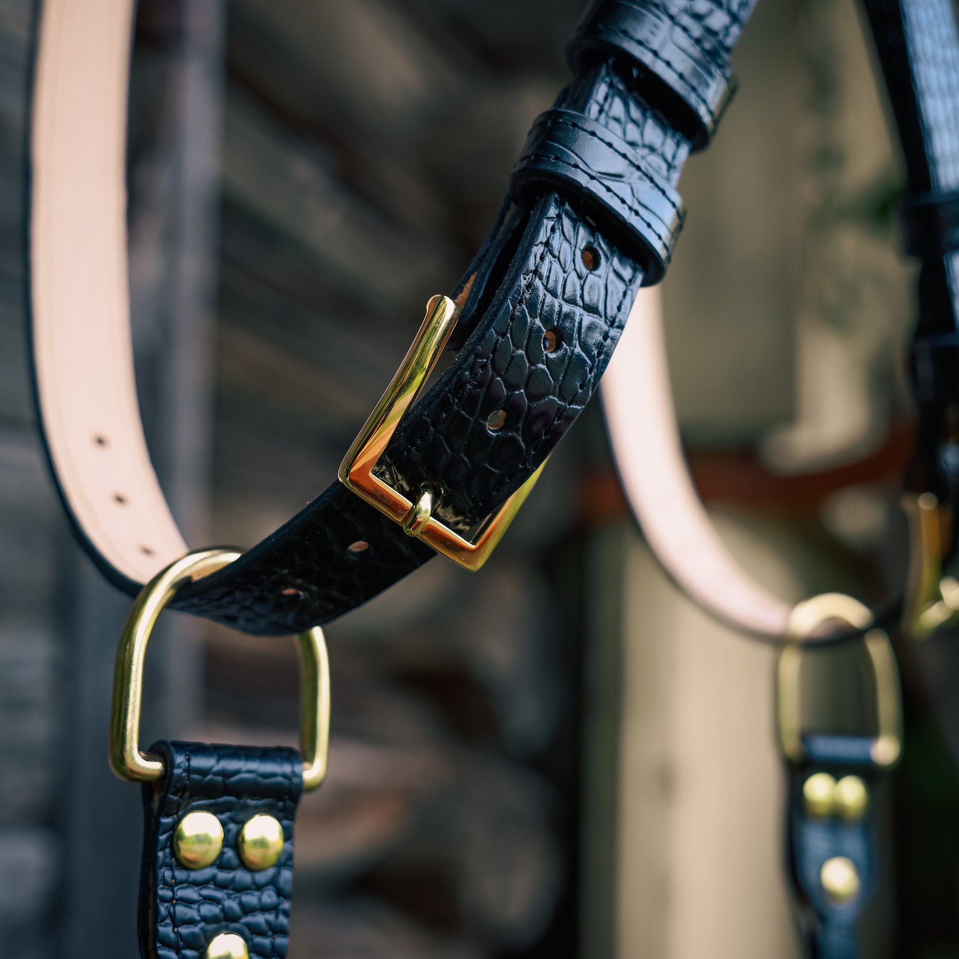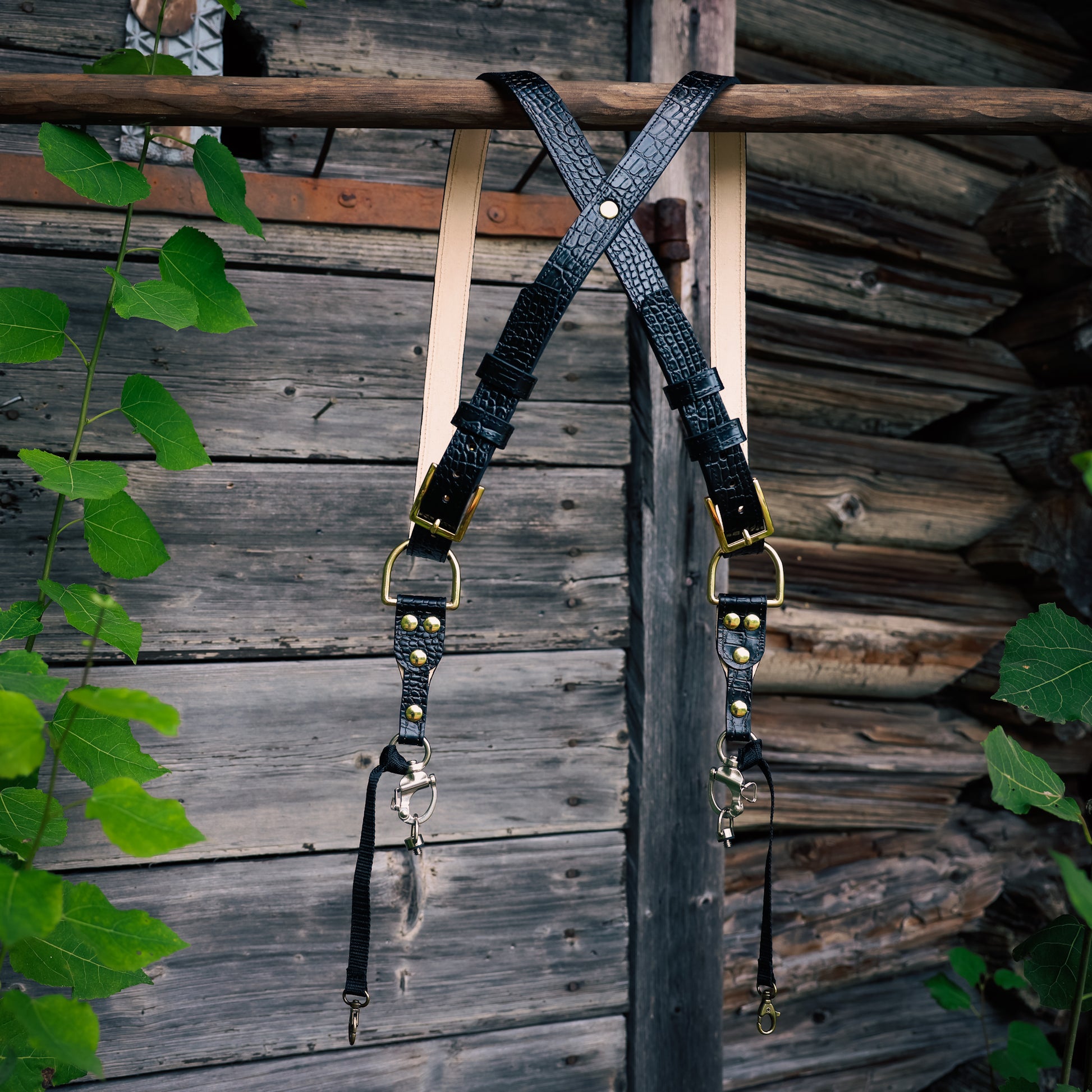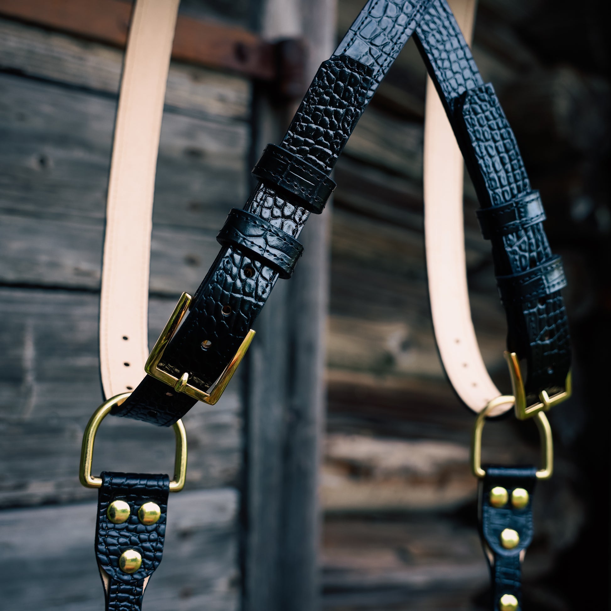 Kahden kameran valjaat Croco / 3cm Ompeleilla