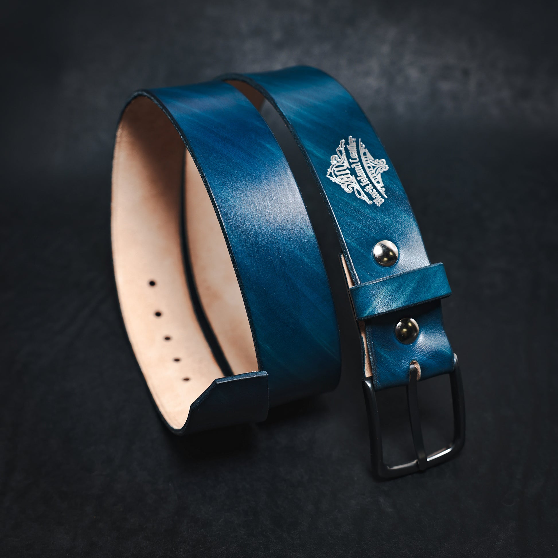 Vyö on valmistettu 3,8mm paksusta naudan kasviparkitusta nahasta, värjäys tässä vyössä on toteutettu täysin käsin ja päällystetty viimeistelyaineella.